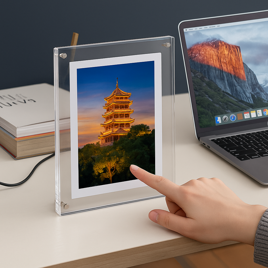 Le Cadre Cristal est plus qu'un simple cadre photo numérique. C'est une fenêtre ouverte sur vos souvenirs les plus chers. Avec son design en acrylique transparent et son écran HD de 10,1 pouces, il s'intègre harmonieusement dans votre intérieur, ajoutant une touche de modernité et de chaleur. Que ce soit pour revivre les premiers pas de votre enfant, les anniversaires ou les vacances en famille, le Cadre Cristal vous permet de garder ces moments précieux à portée de regard.