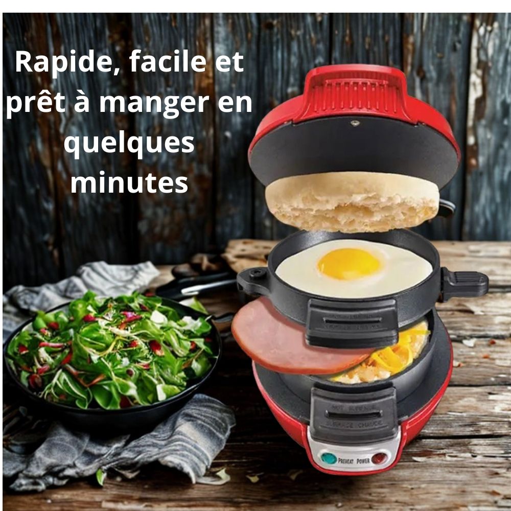 Burger Express – L’appareil malin qui prépare burgers, sandwichs et petits-déjeuners maison en un temps record.
